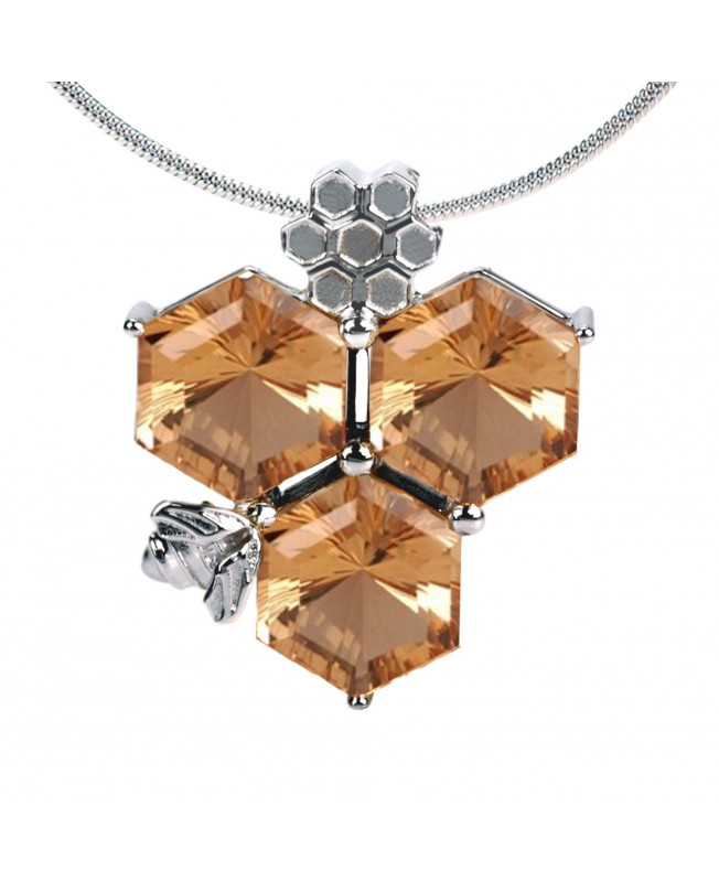 Intense gold hues gemstones, three 10mm hexagon shaped NATURAL CITRINE have been meticulously selected from Anahi Mine’s rough and enhanced by in-house hand cut with inwards curved facets.