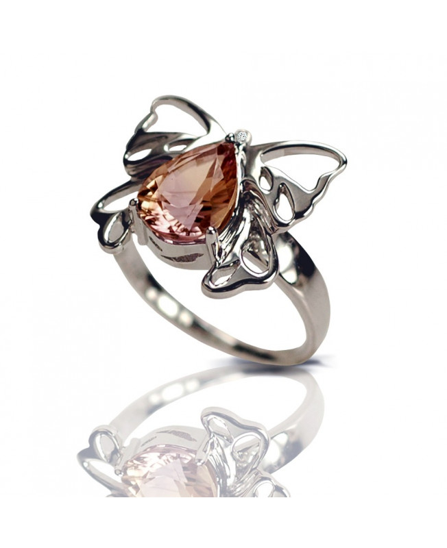 The intermingling, purple and gold hues gemstone, 10X7mm Pear shaped AMETRINE BLEND has been meticulously selected from Anahi Mine’s rough and enhanced by in-house hand cut with inwards curved facets. This piece includes a 1mm diamond.