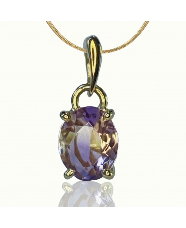 The intermingling, purple and gold hues gemstone, 8X6mm Oval shaped BLENDED AMETRINE has been meticulously selected from Anahi Mine’s rough and enhanced by in-house hand cut.