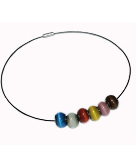 Assorted colored frolic beads, stainless steel wire with special scrwe -on clasp. Total length 43cm.