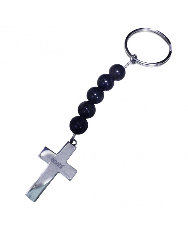 Esferas de piedra de sangre, cruz y argolla para llaves de acero inoxidable. Largo total 10cm.