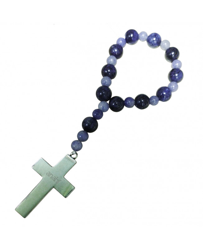 Esferas de onix y ojo de tigre azul con cruz de acero inoxidable. Diametro 3cm. Largo total 8.5cm.