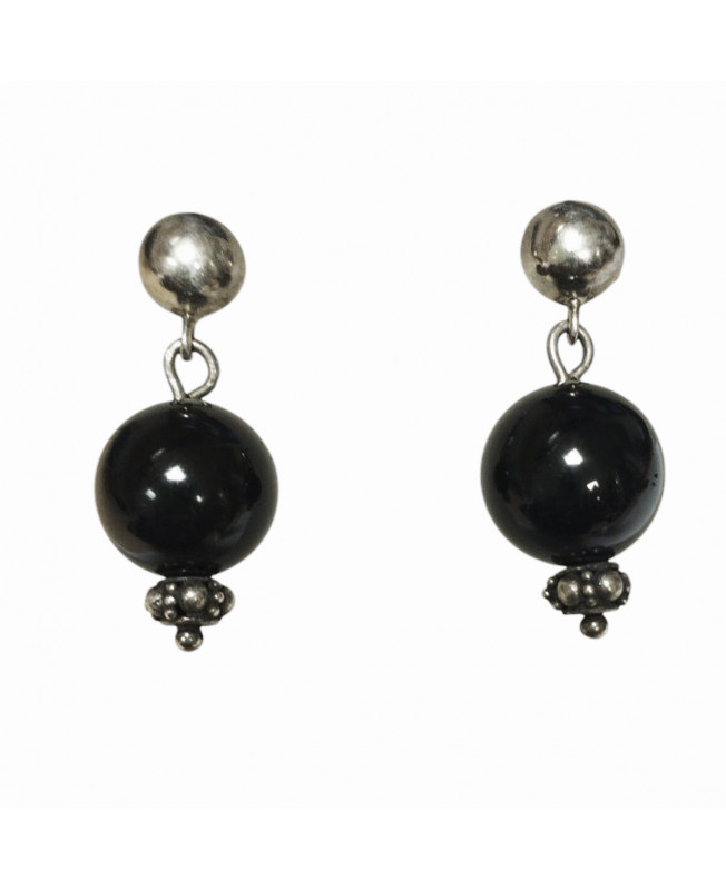 Esferas de onix y detalles en plata 925 envejecida. Largo total 3cm.