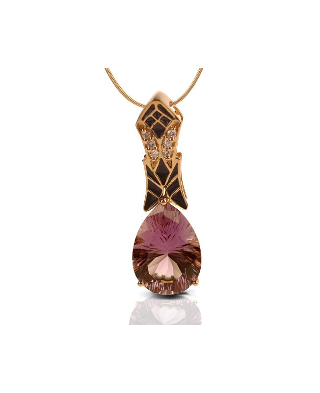 Gema de AMATISTA, forma de Gota, corte concavo, tamaño 18X13mm y seis brillantes 1mm.