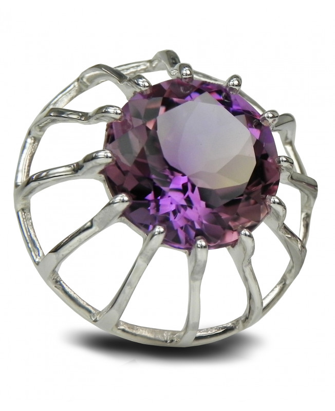 Gemas de Ametrino (Bolivianita) forma redonda, corte concavo, tamaño 14mm.